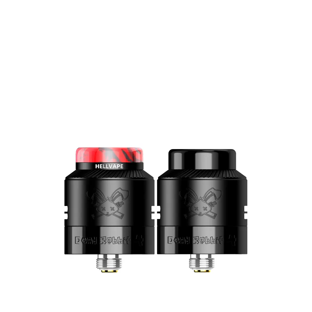 The Hellvape Dead Rabbit 4 RTA is an upgraded, leak-resistant rebuildable tank atomizer (RTA) for dual-coil builds, featuring a spacious 13mm, 48-hole honeycomb deck, a top-to-bottom airflow system for intense flavor and vapor, and an easy slide-open top fill. It offers a 26mm diameter with ample room for complex coils, improved wicking, and adjustable airflow, catering to flavor chasers and cloud enthusiasts seeking high performance and ease of use.