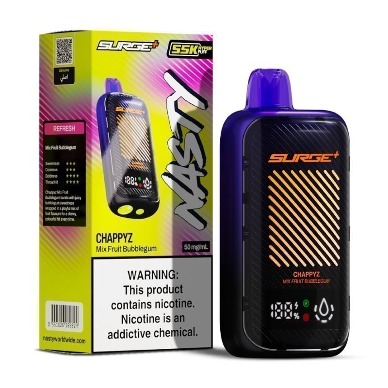The "Nasty Surge 55000 Hyper Puffs " likely refers to the Nasty Rechargeable Bar – Surge 55000 Hyper Puffs, a high-capacity disposable vape known for its endurance and power. This device is designed to deliver a long-lasting vaping experience with a focus on flavour and vapor production.