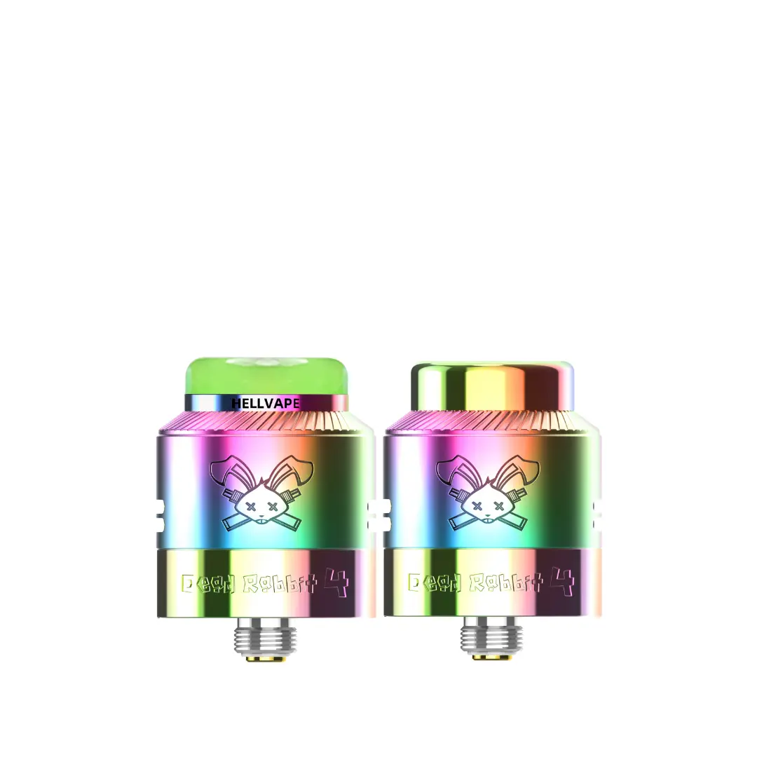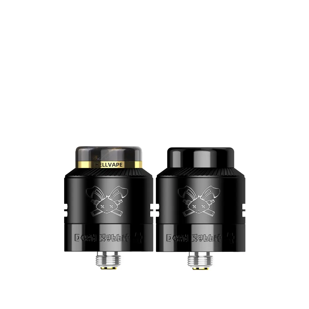 The Hellvape Dead Rabbit 4 RDA is a versatile 24mm rebuildable dripping atomizer known for intense flavor and massive clouds, featuring a postless deck for easy single or dual coil builds, a unique "rabbit-ear" airflow system with honeycomb channels for smooth, pure taste, and a compact design for broad compatibility, including squonking with an included BF pin. It offers enhanced airflow control with side and bottom inlets, supports complex coils, and comes with an AG+ resin drip tip for durability and hygiene, making it a top choice for DIY enthusiasts.